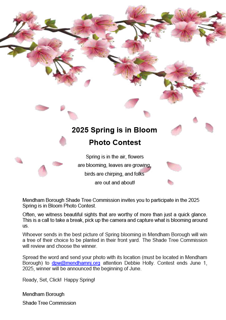 The Mendham Borough Shade Tree Commission invites you to participate in the 2025 Spring is in Bloom Photo Contest!