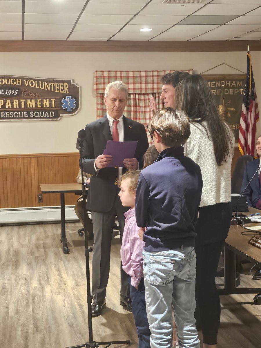 Congratulations to Mayor Jim Kelly and Councilmembers Neil Sullivan and Chris Neff on their swearing-in at the annual Reorganization meeting. Mendham Borough also swore in Mike Orgera as Fire Chief for the Mendham Borough Fire Department and Ken Lordy as Captain for the Mendham First Aid Squad. Congratulations to all!
